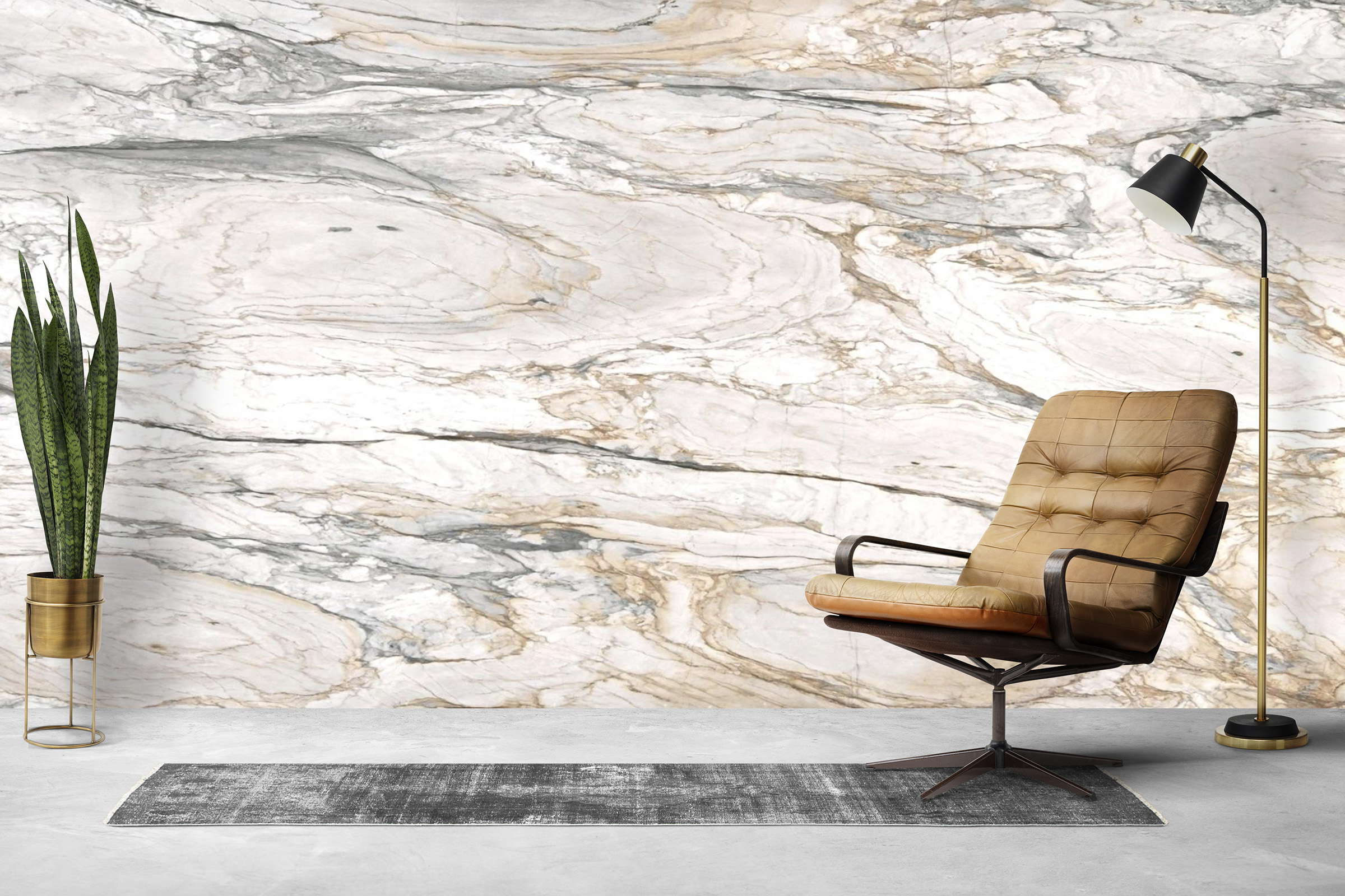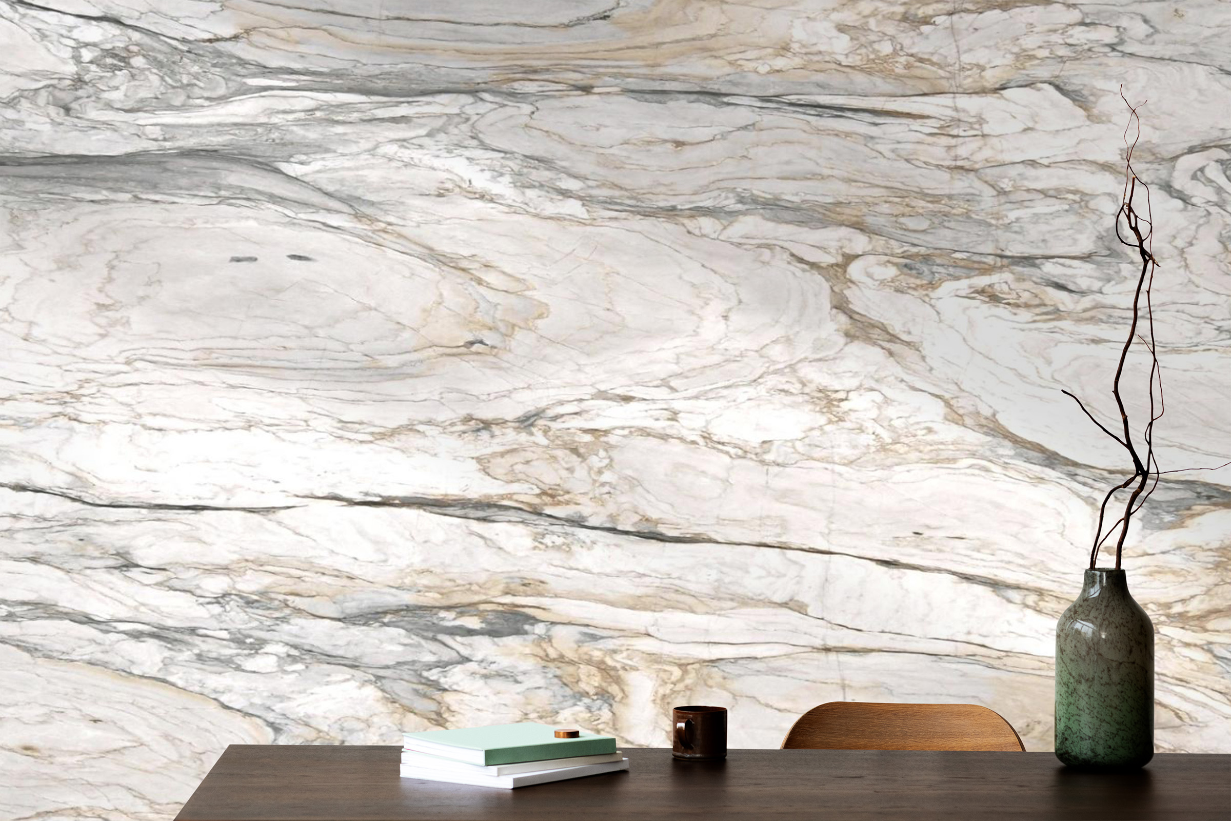 Its nuanced palette pairs beautifully with a wide range of finishes, including natural wood, matte black, brushed nickel, chrome, and brass. Whether incorporated into a sleek contemporary design or a more layered, classic interior, this marble integrates seamlessly while maintaining a strong visual presence.