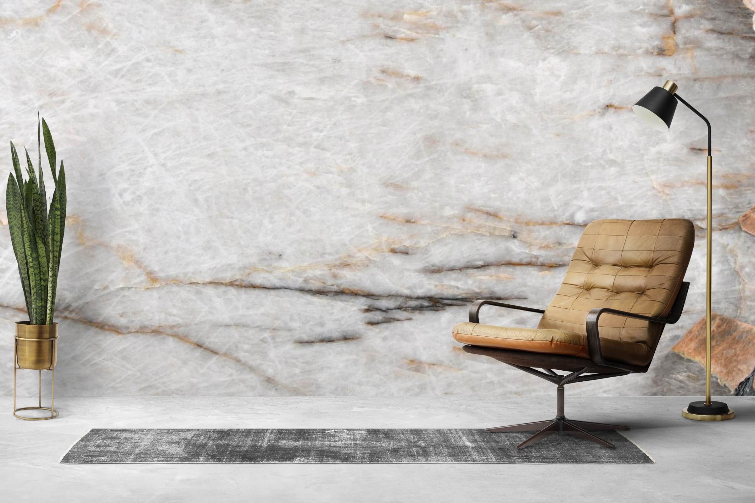 Strong black veins move confidently across the quartzite, delivering structure and visual energy, while rich brown accents weave throughout to introduce warmth and balance. Together, these tones create depth and character, resulting in a surface that feels expressive without overwhelming the design.