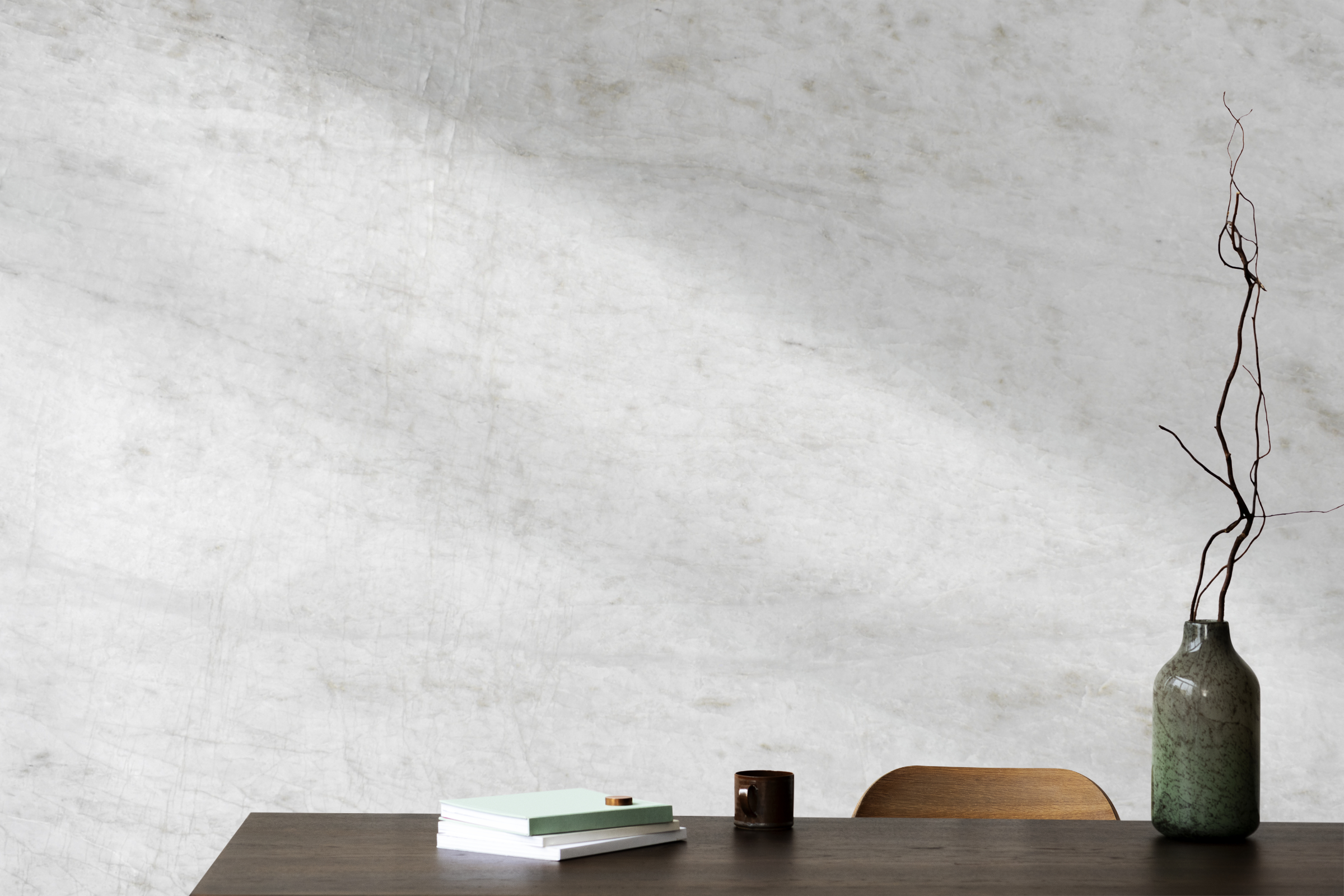 Graceful grey veins move naturally across the slab in soft to medium tones, introducing subtle motion and depth. This gentle contrast preserves the stone’s minimalist appeal while highlighting the quartzite’s natural clarity and refined character.