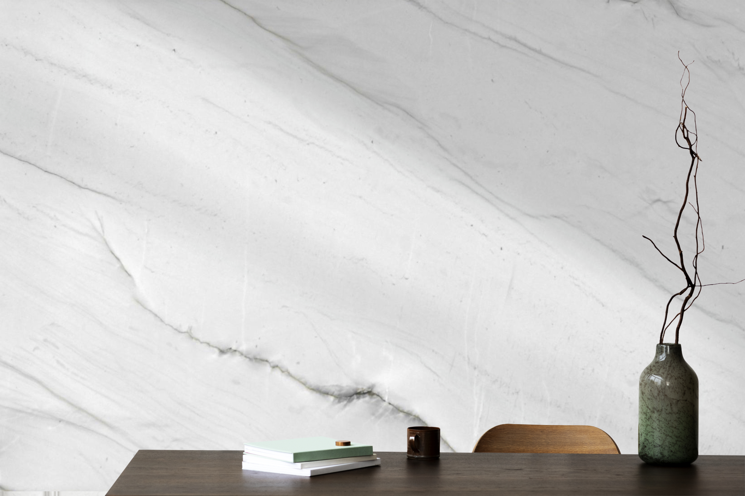 Mont Blanc Polished presents a luminous white backdrop enhanced by striking black veining and a sleek, mirror-like finish. The stone immediately adds energy and elegance to a space, setting a refined, high-end mood. Its polished surface amplifies natural and artificial light, giving the quartzite a crisp, sophisticated glow.