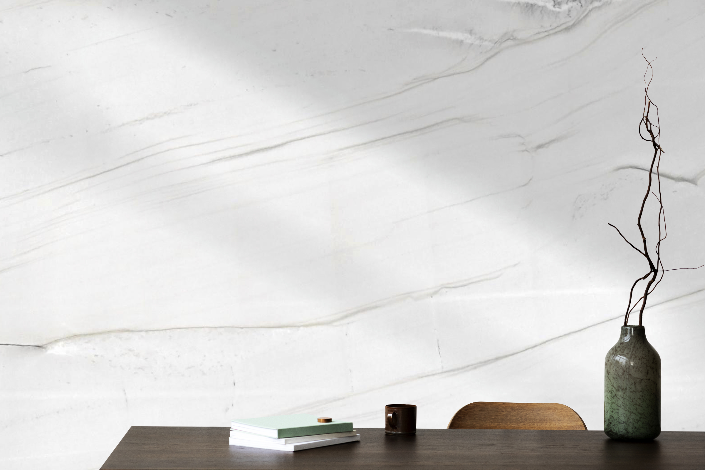 This quartzite complements a wide range of finishes, pairing seamlessly with matte black fixtures, clean white or deep charcoal cabinetry, natural wood elements, brushed nickel, and warm brass accents. It’s also well suited for contemporary kitchens, spa-like bathrooms, and elevated living areas. Whether used as a waterfall island, vanity surface, or statement wall, it brings impact and balance to the space.